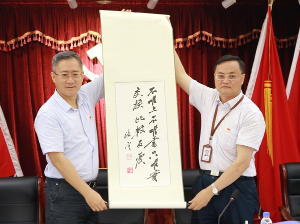 會上,陳館長向中智公司贈送陳云同志的 “不唯上、不唯書、只唯實,交換、比較、反復(fù)”15字訣的親筆手跡卷軸。